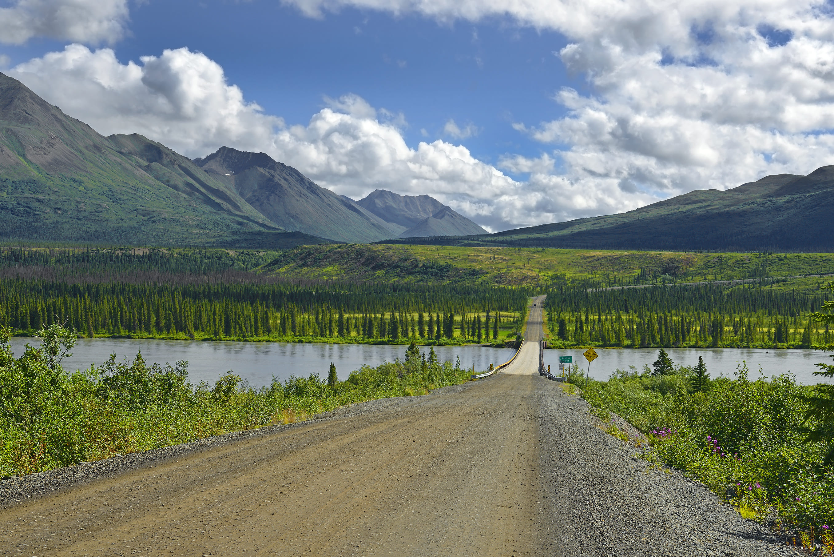We begin by heading south from Fairbanks along the Richardson Highway before turning onto the Denali Highway, where the pavement ends and the gravel begins. From there, the landscape opens quickly with long views to the Alaska Range, braided rivers, kettle lakes, rolling spruce hills, and stretches of high, open country that feel genuinely remote.